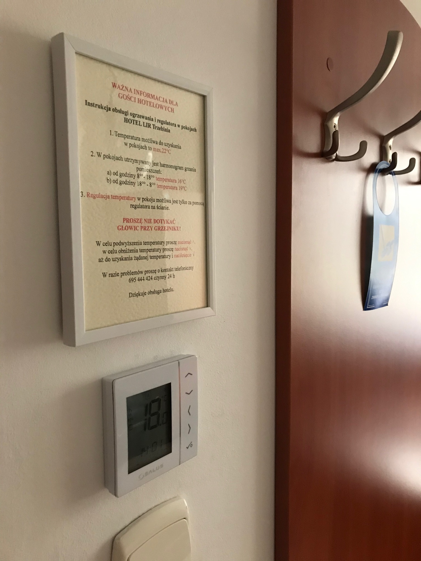 W każdym pokoju zainstalowane są regulatory temperatury tak, aby umożliwić Państwu regulację. Pokoje utrzymywane są w okresie grzewczym na poziomie 18 st.C tak aby szybko dogrzać do rządanej temperatury.