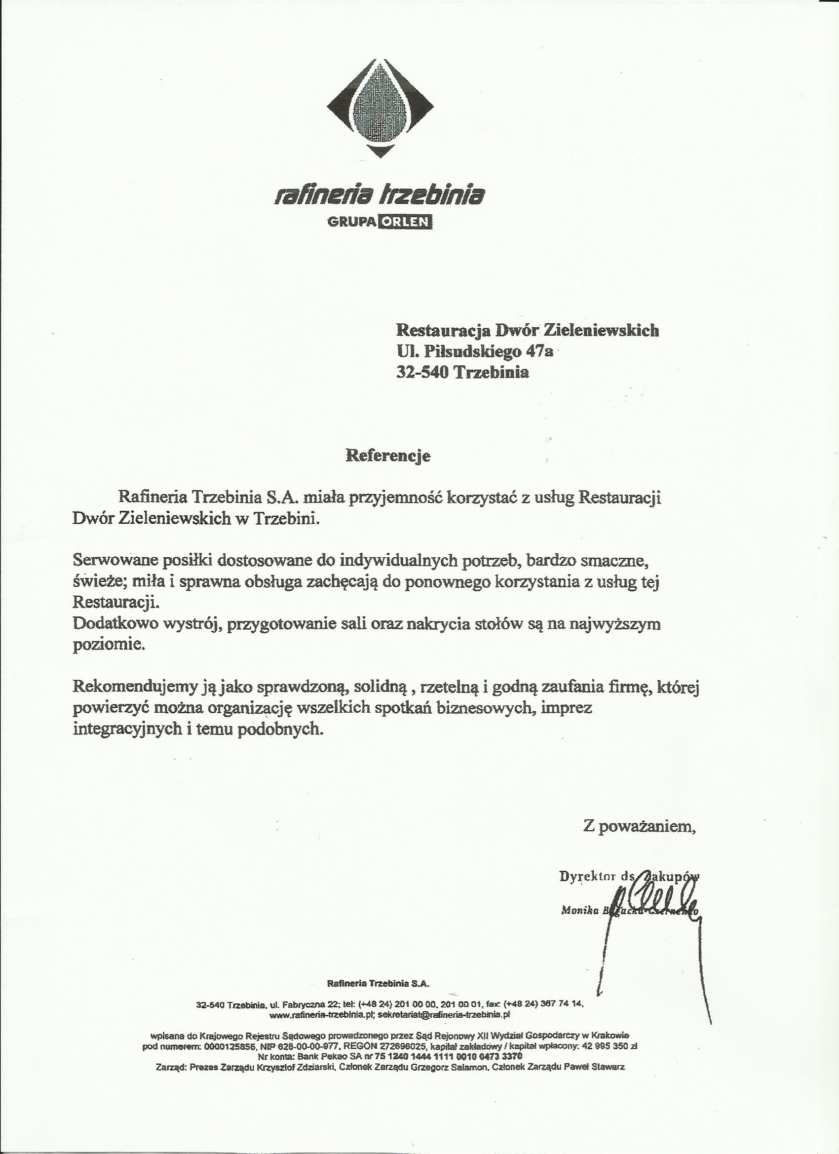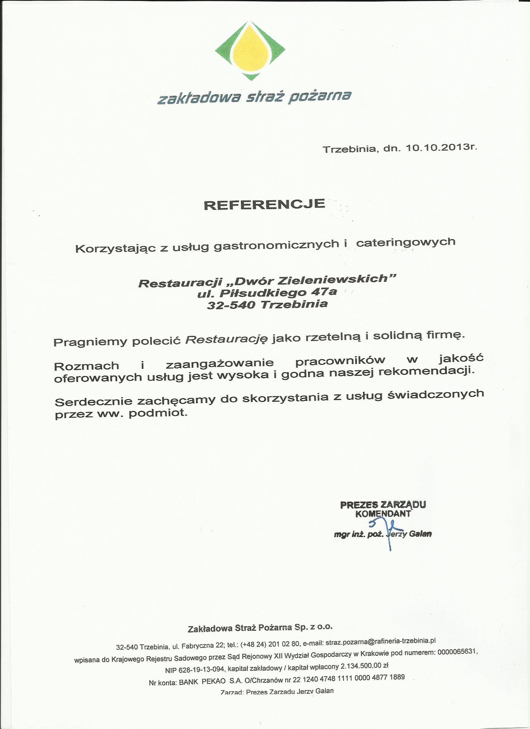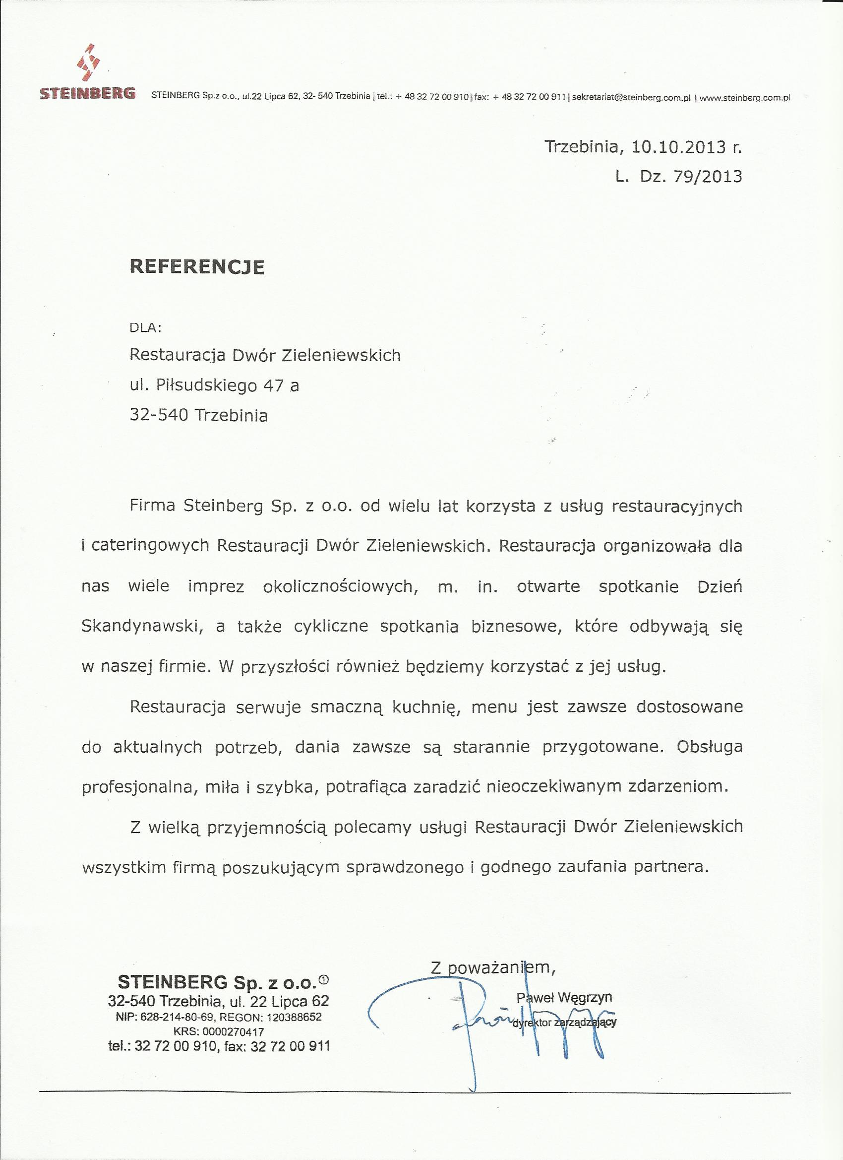 W 2003 roku, postanowiliśmy ubiegać się o możliwość poprowadzenia restauracji w urokliwym miejscu - Dwór Zieleniewskich. Jako, że nasza filozofia działania - jakość, elegancja, elastyczność dobrze wpisywała się w kulturę tego pięknego obiektu, z powodzeniem otworzyliśmy przytulną restaurację w piwnicach dworu.